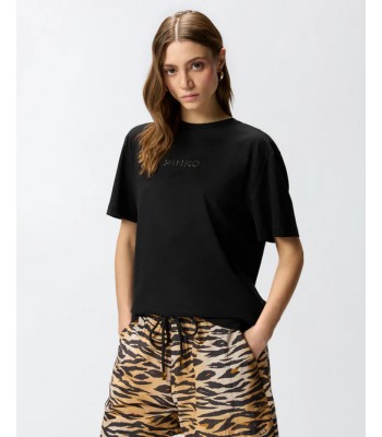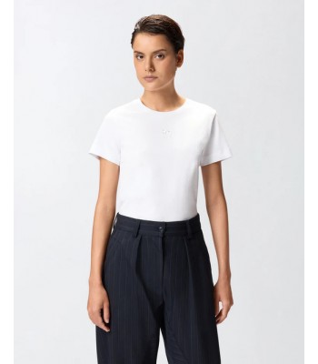 T-shirt girocollo a mezza manica in jersey di cotone, logo lettering PINKO. La scritta sul retro e l'immancabile logo Love Birds.