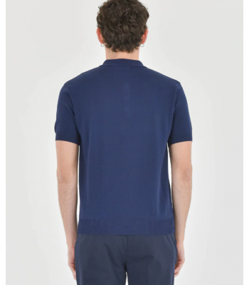 Polo blu con colletto classico con tre bottoni, manica corta, logo sul fondo tono su tono.
