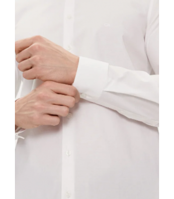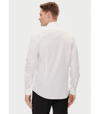 Camicia bianca slim fit, chiusura con bottoni, logo tono su tono sul petto, colletto classico.