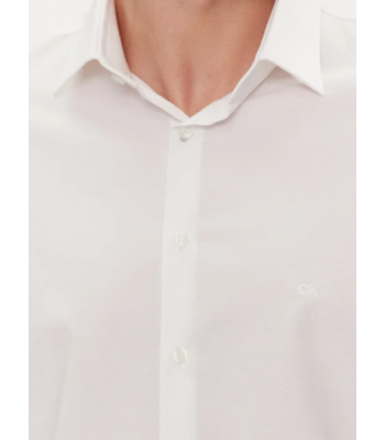 Camicia aderente a fantasia tono su tono. Ha un colletto italiano, una chiusura con bottoni e iniziali CK ricamate sul petto.
