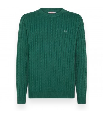 Maglione realizzato in misto lana, maniche lunghe e scollo a barchetta con profili a costine è impreziosito da strass applicati su tutto il capo.