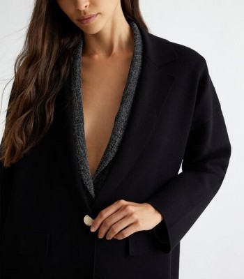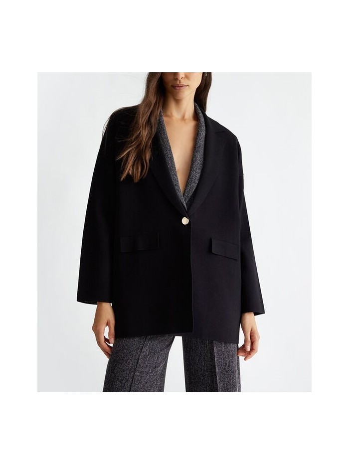 Blazer in maglia di misto viscosa, revers classico, tasche con patta sui lati e logo in metallo sul retro. Chiusura monopetto con bottone logato.