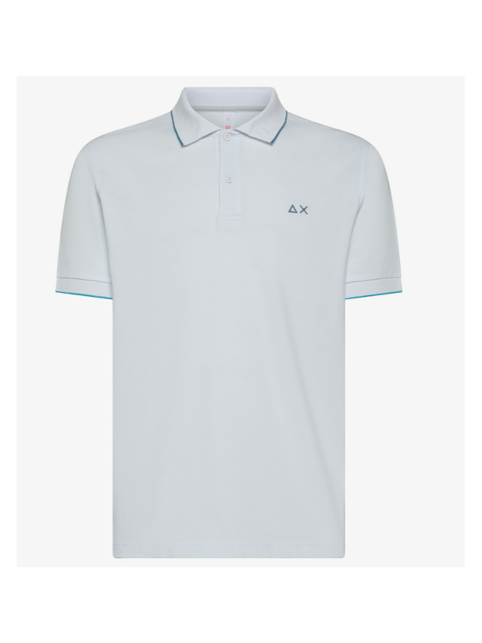 Polo in piquet di cotone stretch, colletto con dettagli a contrasto ,maniche corte con bordi a contrasto, chiusura con bottoni, logo fluo SUN68 ricamato sul petto.