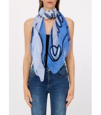 Foulard leggero in organza con stampa geometrica e quadrifoglio stilizzato, logo stampato discreto per un tocco sofisticato.