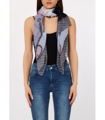 Foulard leggero in organza con stampa geometrica e quadrifoglio stilizzato, logo stampato discreto per un tocco sofisticato.