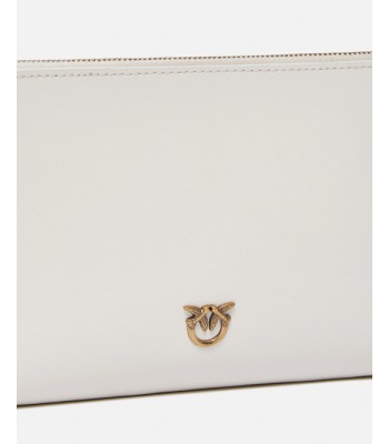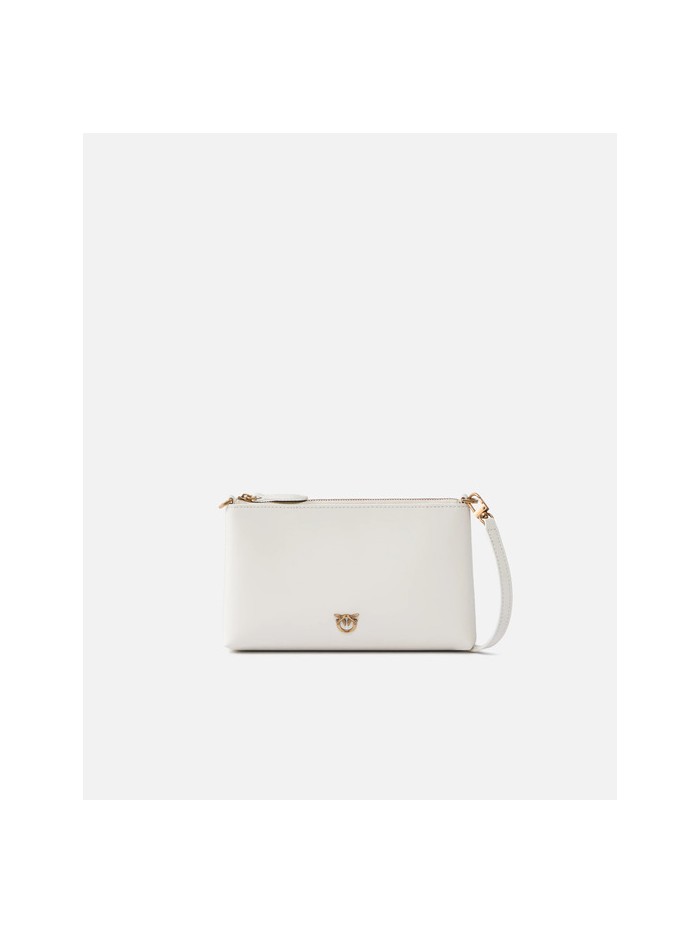 Borsa a tracolla flat in morbida pelle mano seta, placchetta Love Birds Diamond Cut. Interno foderato e tracolla rimovibile a catena sottile. Chiusura con zip.