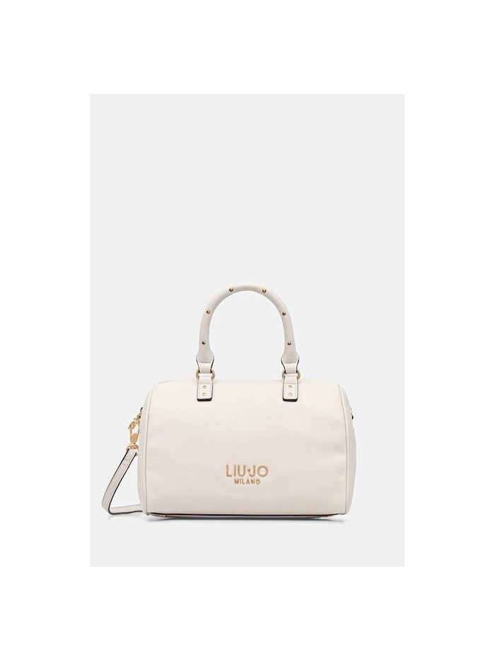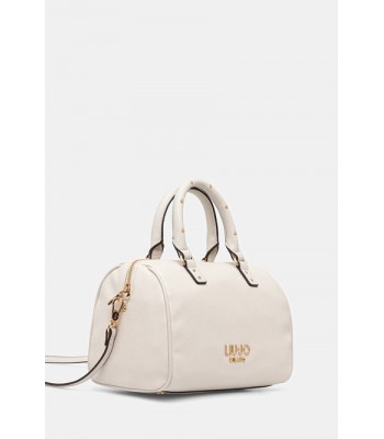 Borsa piccola stampa effetto bottalato, fodera interna logata, scomparto centrale chiuso con zip. Logo lettering e manici con borchie. Tracolla in abbinamento.