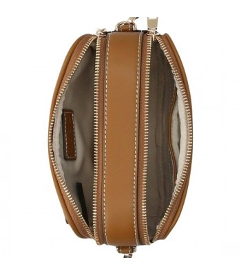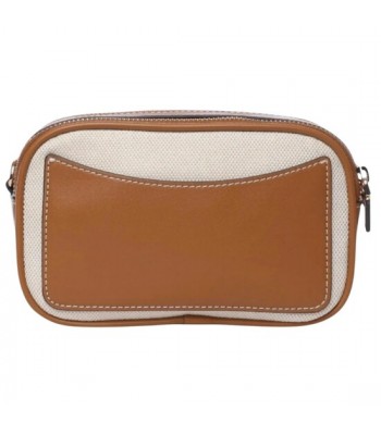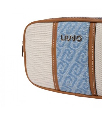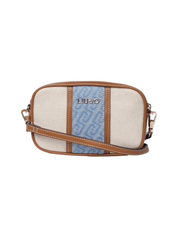 Borsa a tracolla piccola, realizzata in canvas con inserto in denim, due scomparti e chiusura con zip. Tracolla regolabile e tasca sul dietro.
