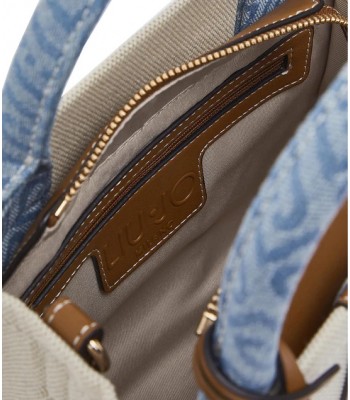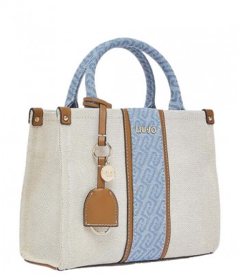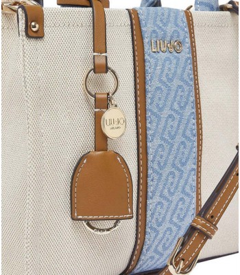 Borsa a mano media, realizzata in tessuto jacquard, scomparto centrale, chiusura con zip e charm removibile.