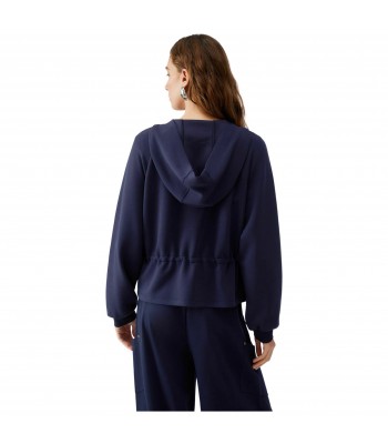 Felpa in neoprene, cappuccio in tono colore, chiusura con zip, coulisse in vita, logo ricamato sulla manica.