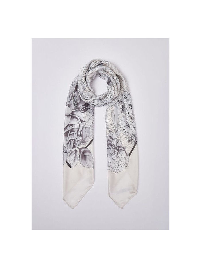 Foulard grande in poliestere stampatoa fiori, consegnato all'interno di un'elegante busta logata.