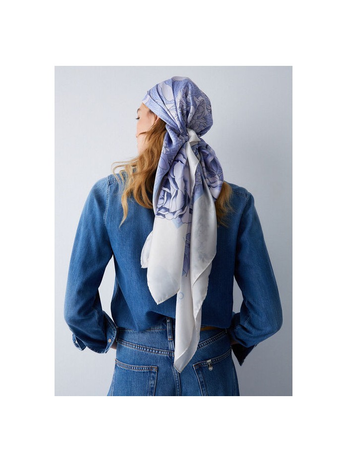 Foulard grande in poliestere stampatoa fiori, consegnato all'interno di un'elegante busta logata.