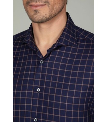 Camicia casual a quadri su base twill, con collo mezzo francese.