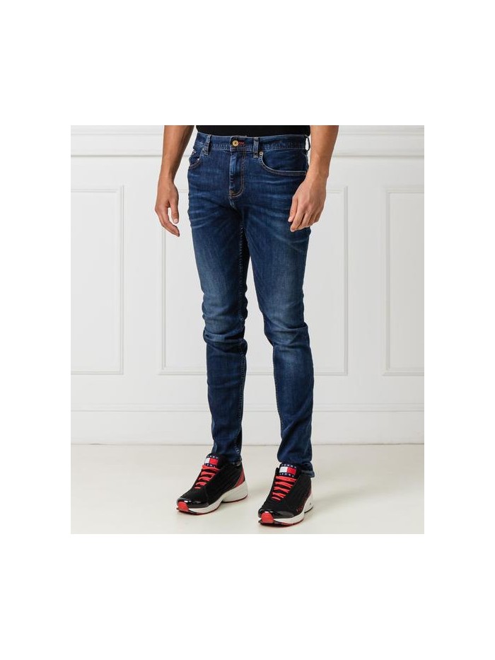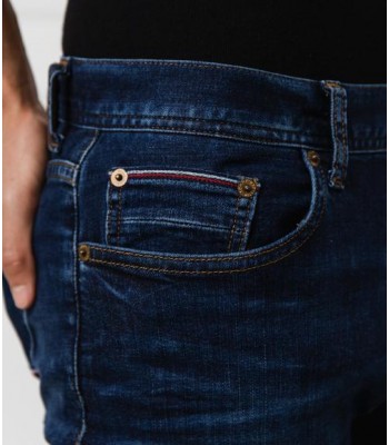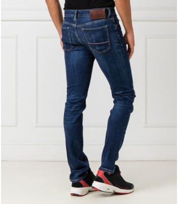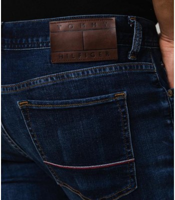 Jeans Tommy Hilfiger extra slim fit, modello 5 tasche con sarpa in pelle.